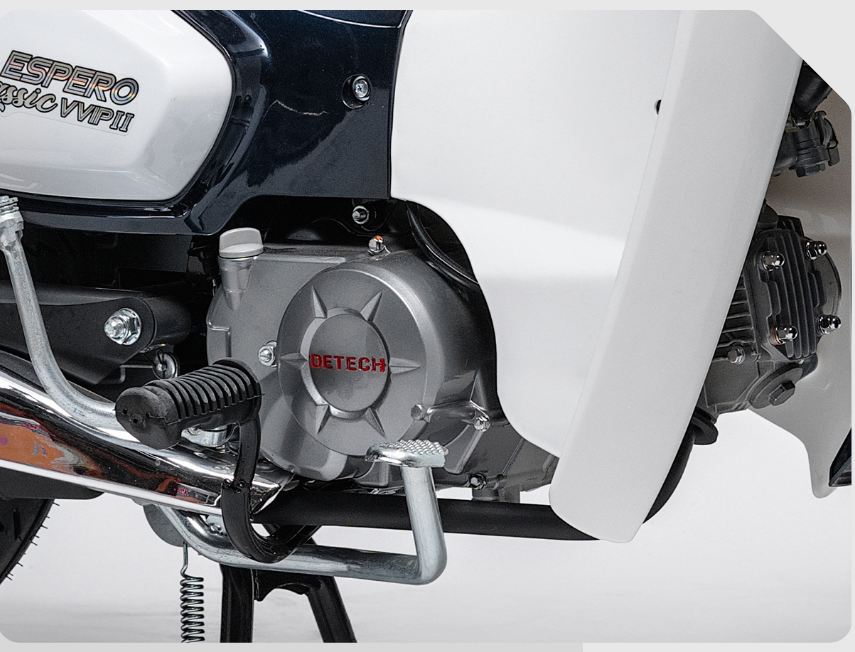 Cub Espero Classic VVIP II sử dụng động cơ xăng 4 thì, làm mát bằng không khí với dung tích xi lanh 49.5cc. Động cơ nhỏ gọn nhưng mạnh mẽ, phù hợp cho nhu cầu di chuyển hàng ngày.