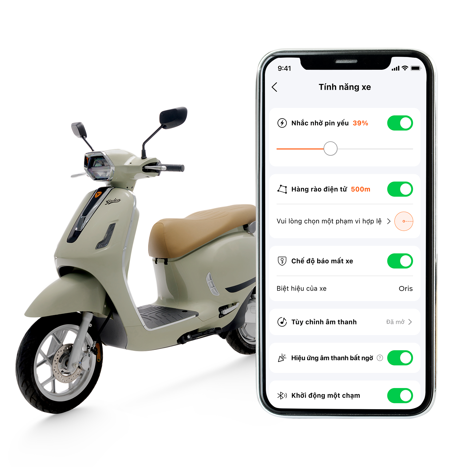 Kết nối thông minh không cần chìa khóa, thông qua YADEA APP tiện lợi